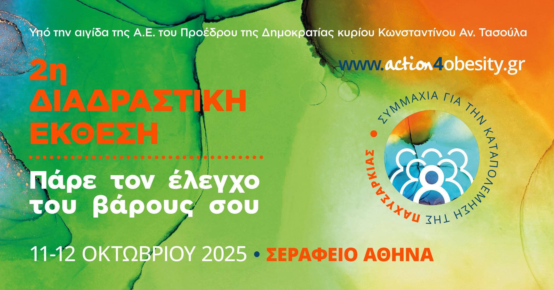 Η 2η Διαδραστική Έκθεση «Πάρε τον Έλεγχο του Βάρους σου», που πραγματοποιήθηκε στις 11-12 Οκτωβρίου 2025 στο Σεράφειο Δήμου Αθηναίων, υπό την αιγίδα της Α.Ε.